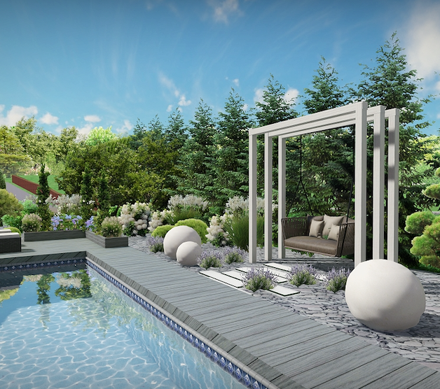 išryškinti spalvas, sužaisti su šešėliais, išryškinti atskirus medžius, o turint baseiną kieme – sukurti